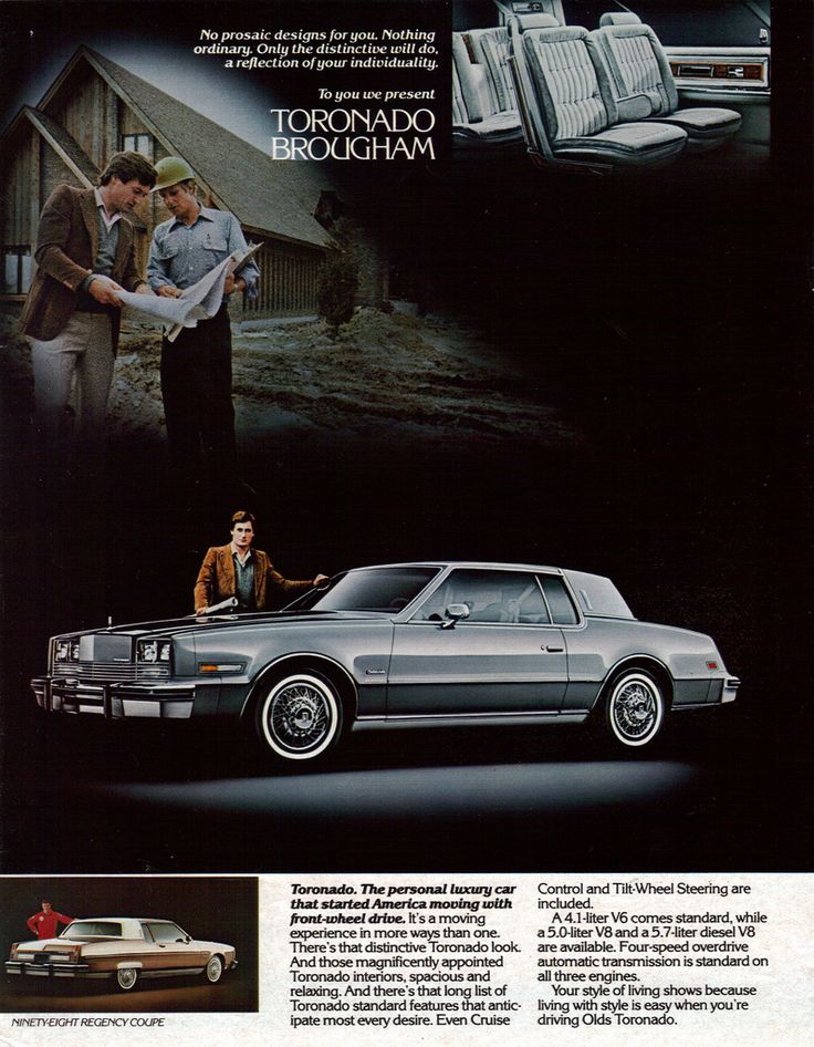 The standard engine was the LC4 125 bhp 4.1 liter/252 ci V6 with a Rochester four-barrel carburetor. Optional power included the LV2 140 bhp 5.0 liter/307 ci V8 with a Rochester four-barrel carburetor at no additional charge and the (don’t do it!) LF9 105 bhp 5.7 liter/350 ci diesel V8 ($825). A four-speed automatic transmission with overdrive was standard with all three engines. The Toronado was not light—curb weight was 3,705 pounds—so even with the more powerful V8, 0-60 mph took about 13 seconds. With the gasoline V8, mileage was rated at 16 city/27 highway by the standards of the day; with the 21.1-gallon fuel tank, Toronado owners could expect to travel about 400 miles with a 10% fuel reserve.