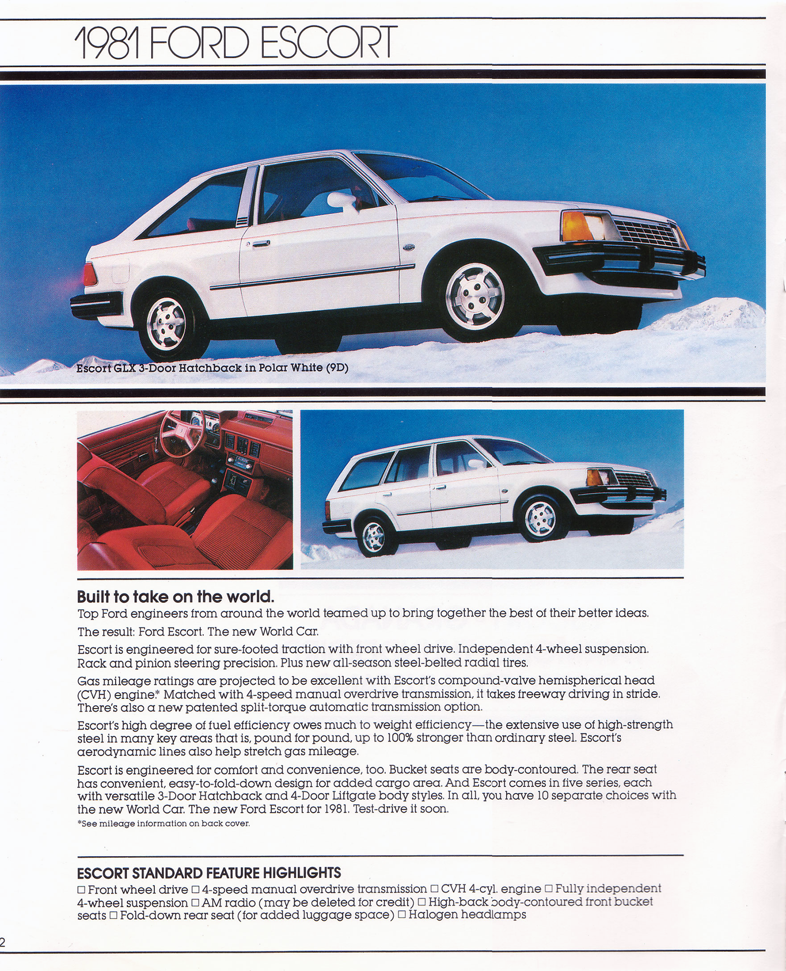 Ford’s biggest news for 1981 was the all-new Escort. Marketed as a “World Car,” the Escort replaced the unloved Pinto and represented a three billion dollar commitment from Ford. The new Escort was shorter, thinner, taller, and about 400 pounds lighter than the Pinto it supplanted.