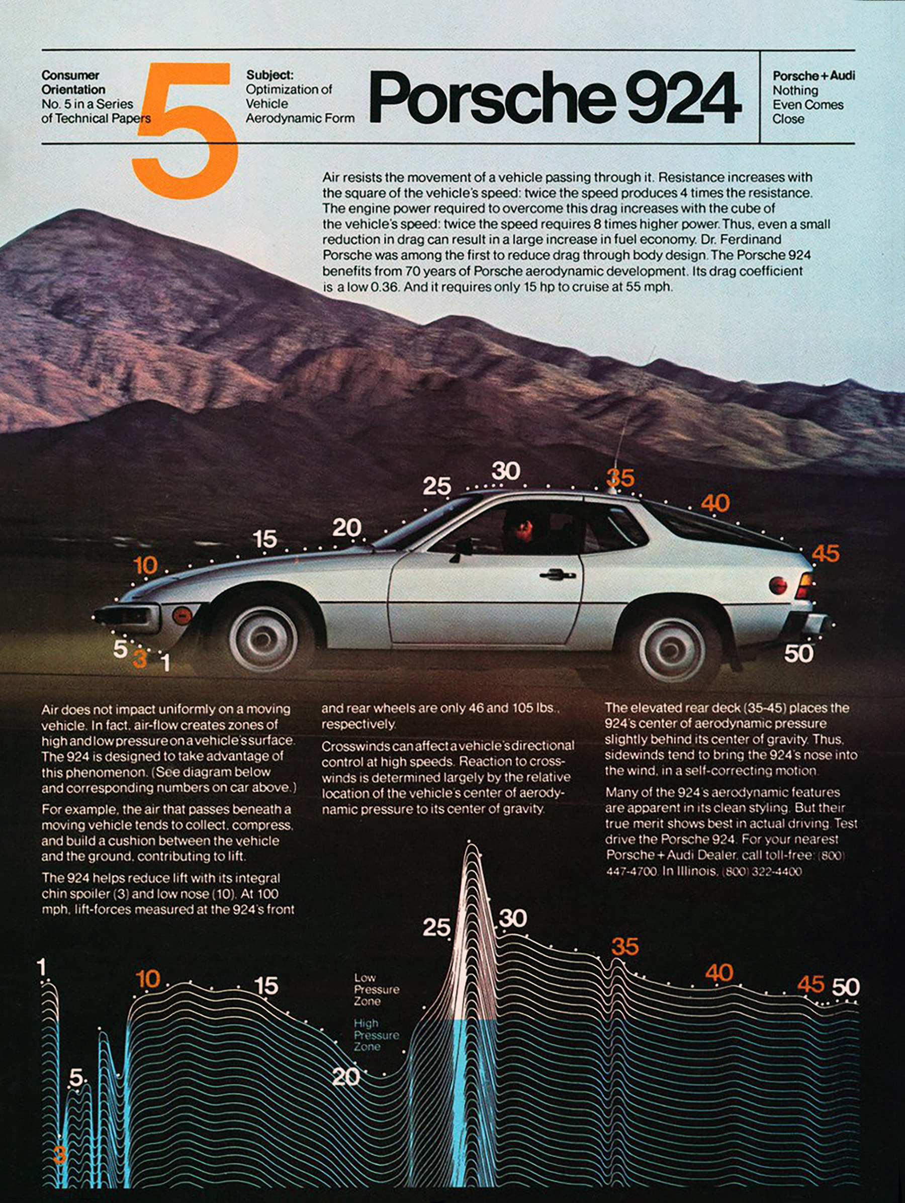 “Many of the 924’s aerodynamic features are apparent in its clean styling.”
