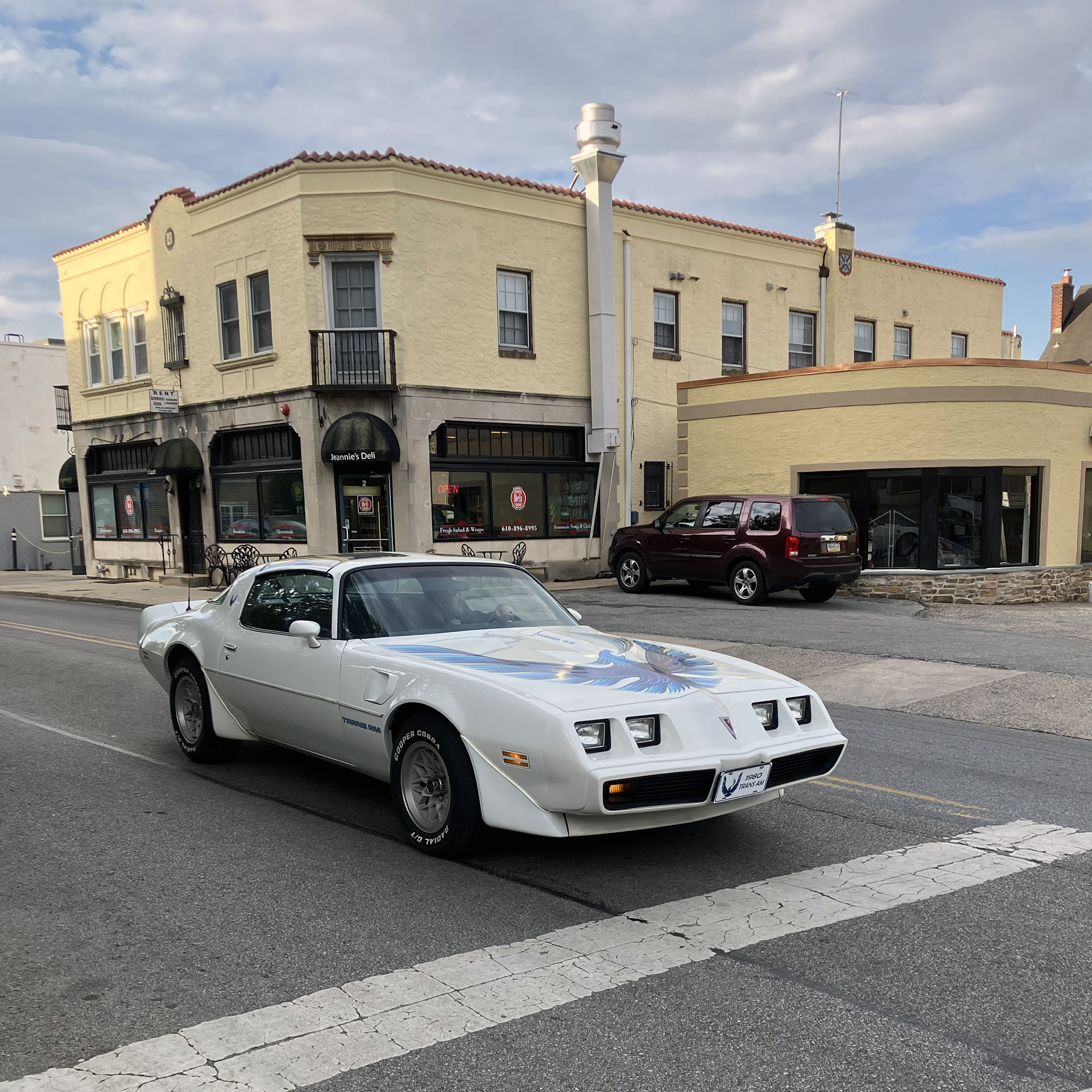 On a lovely spring morning in early 2025, my fiancée was walking from her house toward the temporary train station in Ardmore, PA. On her way to the station, she saw and (more importantly for this blog post) photographed a 1980 Pontiac Firebird Turbo Trans Am in Cameo White smoothly idling at a stop sign. Underneath the image she texted me, she wrote, “You are escorting me to the train.”
