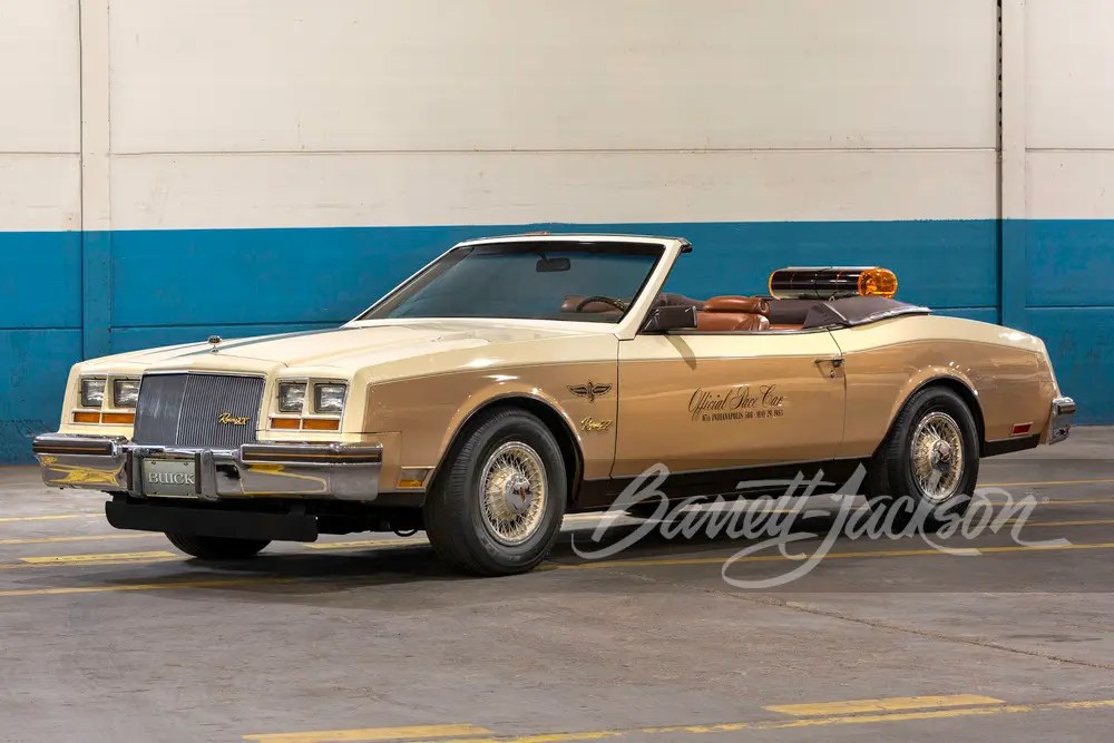 [W24] 1981 Buick Regal Pace Car Edition coupe. Silver/Dark Maple two-tone with maroon cloth front bucket seats. LC3 110 bhp 3.8 liter/231 ci V6 with a two-barrel carburetor, a four-speed automatic, and 72,000 miles. $18,000 for one of 150 built. You could get a Regal with a turbo in 1981, but Buick elected not to do that with these pace car replicas.